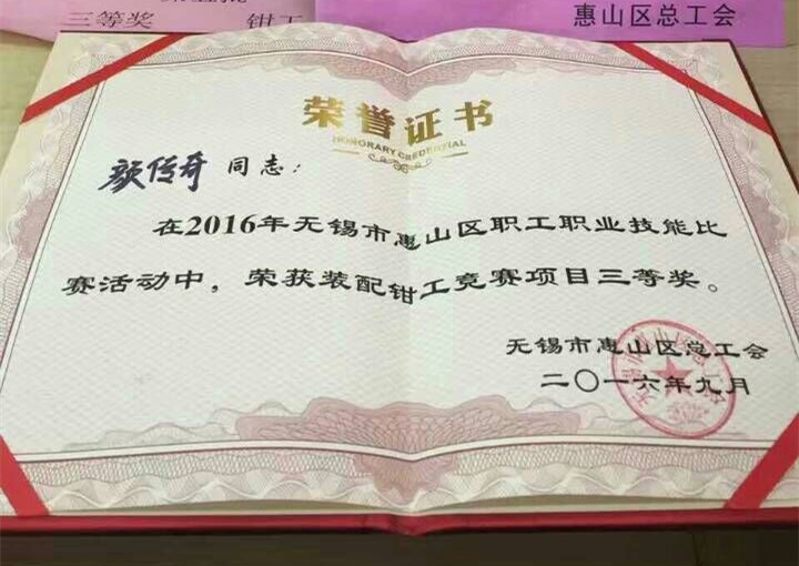 我司總裝車(chē)間顏傳奇、金工車(chē)間魏勇在初賽中脫穎而出,作為陽(yáng)山鎮(zhèn)代表參加此次惠山區(qū)職工職業(yè)技能大賽,并雙雙獲得三等獎(jiǎng)。